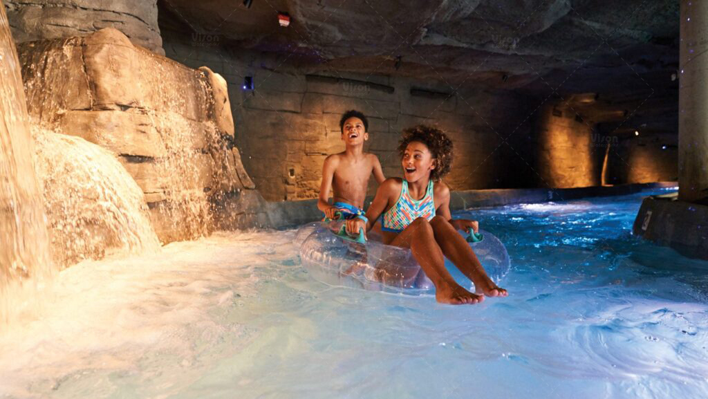 • Water Curtains & Waterfalls: Sheets of water that cascade from overhead rock features or bridges. They provide a refreshing splash and enhance the thematic experience.